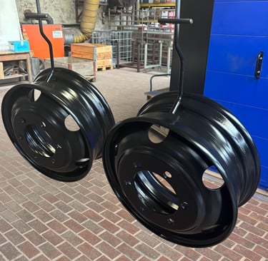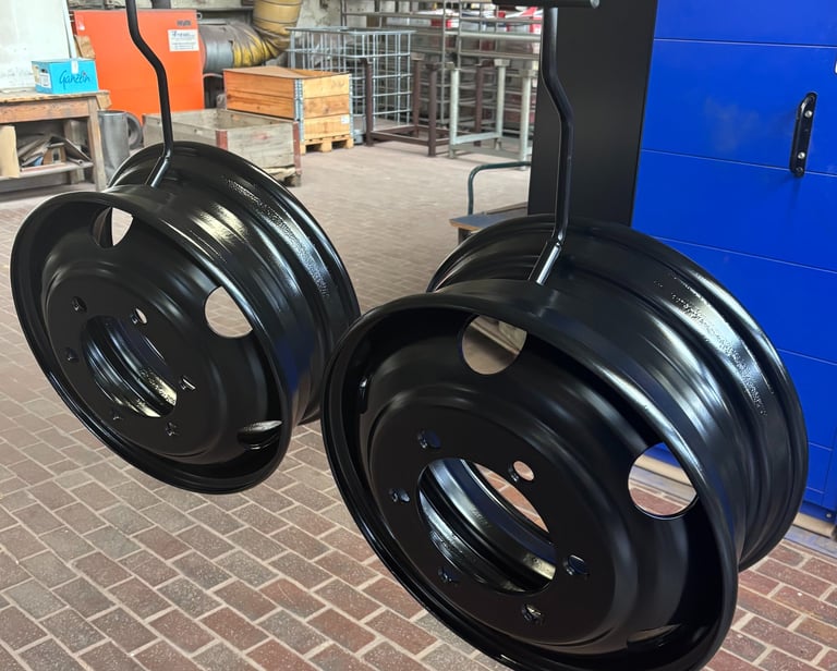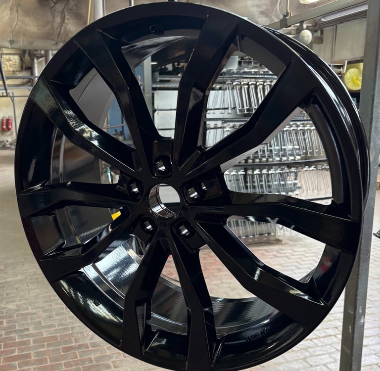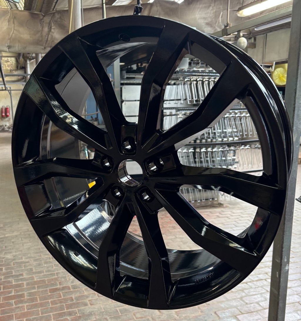 Hier sehen sie einige unsere Felgen die wir beschichtet haben. Zuerst sehen sie hier drei Bilder von fertig beschichteten Felgen in Schwarz.